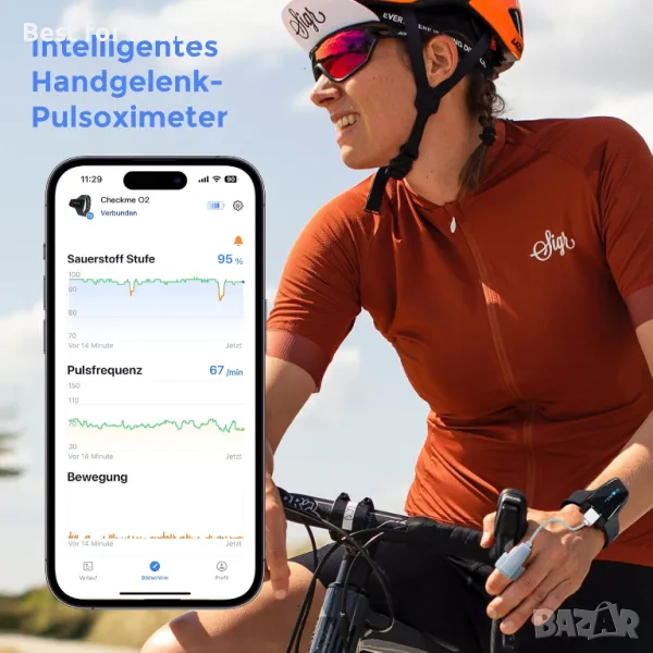 Пулсов оксиметър с Bluetooth и аларма, монитор за кислородна сатурация на кръвта на китката, носимо устройство за сън за сърдечен ритъм с приложение и споделяем отчет