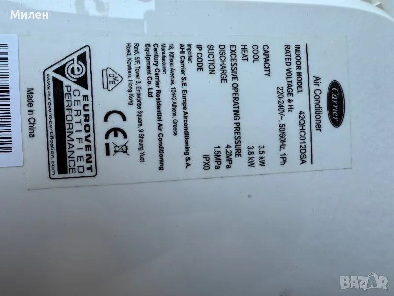 Климатик carrier, снимка 1 - Друга електроника - 50220831 Климатик carrier, снимка 2 - Друга електроника - 50220831 Климатик carrier, снимка 3 - Друга електроника - 50220831 Климатик carrier, снимка 4 - Друга електроника - 50220831 Климатик carrier, снимка 5 - Друга електроника - 50220831 1/5