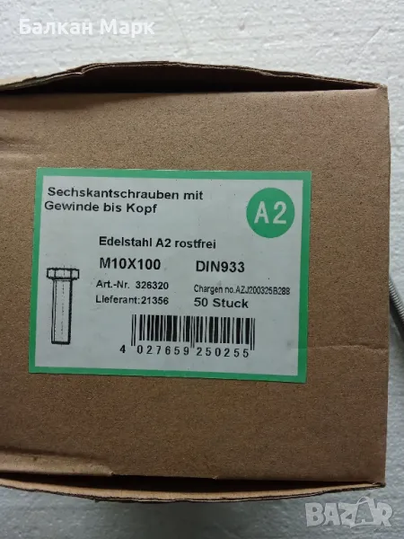 🔩 Болт с шестостенна глава, цяла резба, неръждаем А2, M10x100 мм.50бр.оп., снимка 1 - Железария - 50221289 🔩 Болт с шестостенна глава, цяла резба, неръждаем А2, M10x100 мм.50бр.оп., снимка 2 - Железария - 50221289 1/2