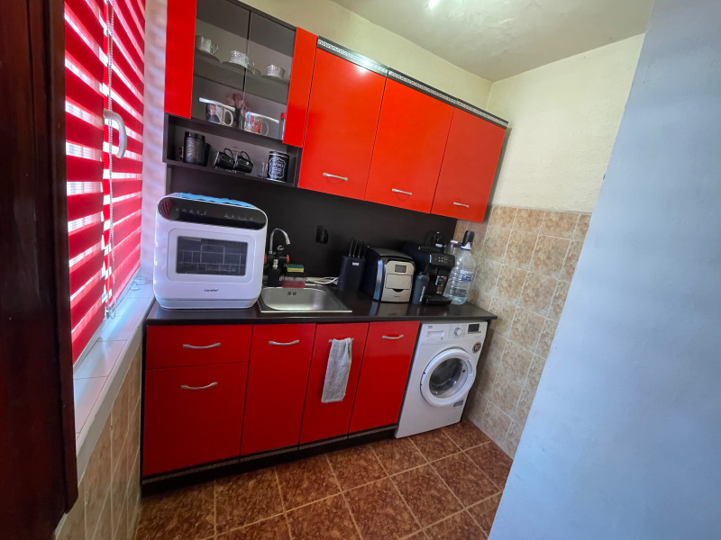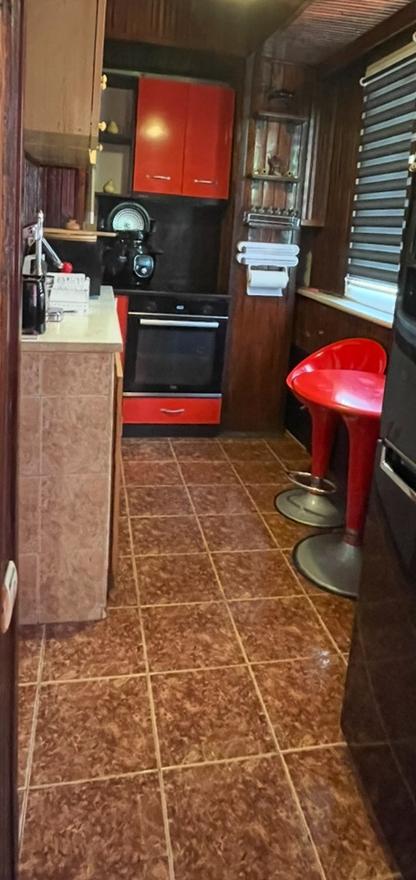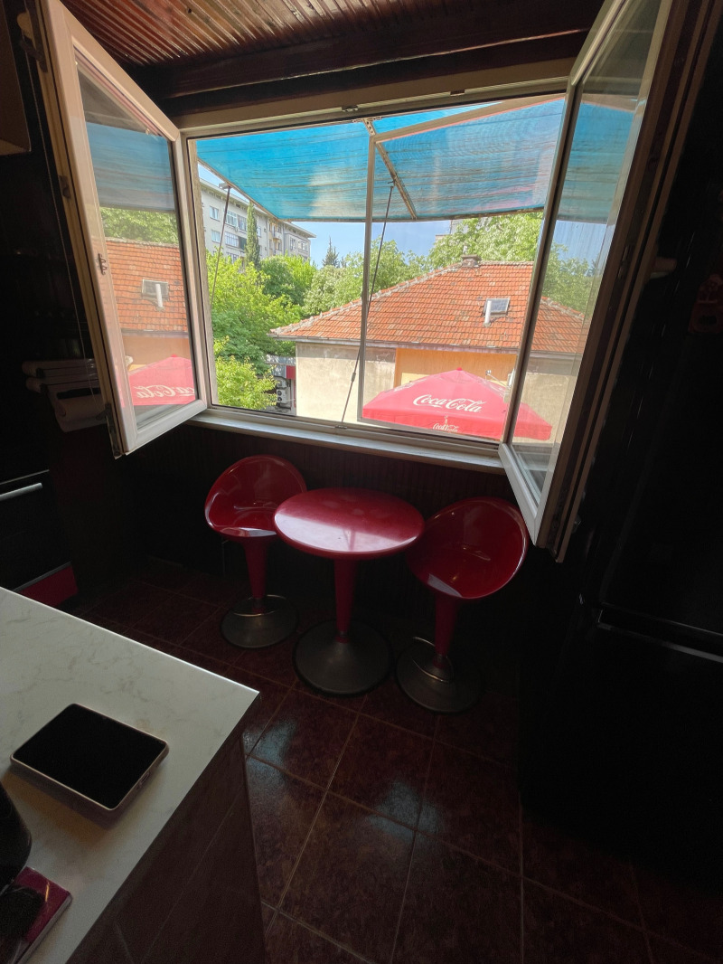 три спални,хол,кухненски бокс и усвоена тераса.Стаите са мебелирани а настилката е масивен паркет. Разполжен в близост до престижното 6-то основно у-ще,жилището предлага предимството да имате удобството че всичко от което се нуждаете е на пешеходно разстояние.Покривът на сградата е отремонтиран преди две години и е в добро състояние. Към имота има две големи мазета с ток , вода и канал и лице на главна улица (подходящи за търговска дейност).Дворът на кооперацията е с контролиран достъп, има гараж и възможност за паркиране пред него. Изложенията са:юг,запад и север като преобладава юг . Всекидневната и терасата са с гледка кьм вътрешния двор с хубава зеленина .