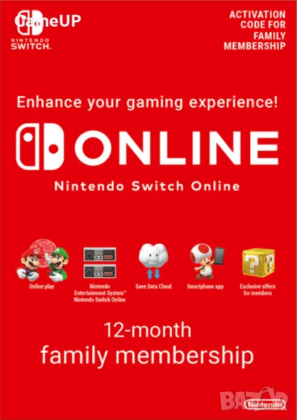 Nintendo Switch Online 12 Месеца Семеен(8 човека) - 59.99лв