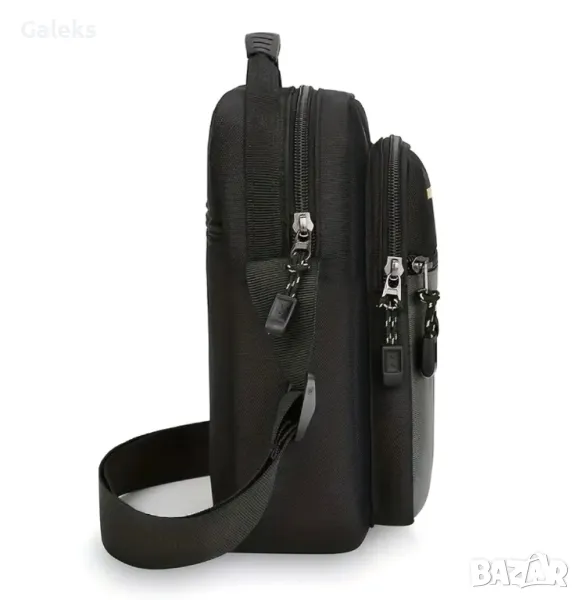 Компактна, Елегантна и Стилна Мъжка универсална черна чанта с презрамки!