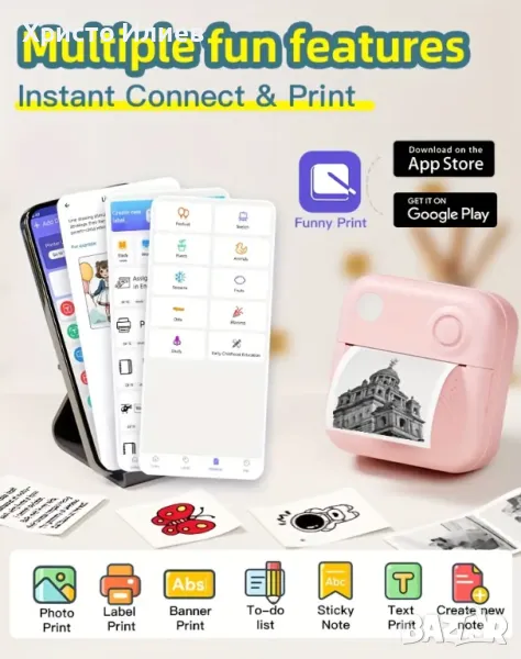 Този уред е възможно да печата различен тип съдържание, включително снимки, фотографии, етикети, текстове, списъци с задачи и други.