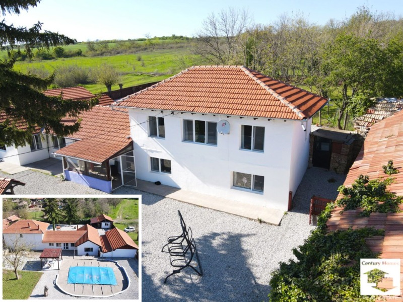 Сгушена в спокоен и живописен район, тази двуетажна къща разполага с площ от 148 кв. м.. С красив плувен басейн, няколко стопански постройки, включително работилница/гараж, този имот предлага олицетворение на луксозен живот. Първият етаж посреща с просторна всекидневна с уютна камина, създаваща топла и приветлива атмосфера. Напълно обзаведена и оборудвана кухня, две спални с двойни легла, нощни шкафчета и гардероби, уютна трапезария, втора светла и приветлива всекидневна и просторна баня/тоалетна с душ и вана, допълват пространството на това ниво.