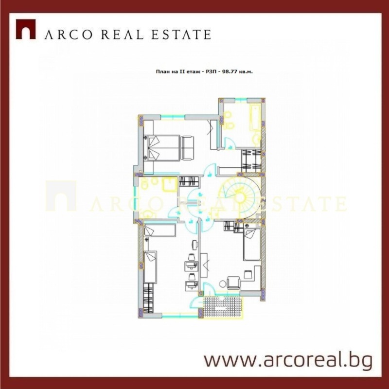 АRCO REAL ESTATE представя на Вашето внимание еднофамилна къща в жилищен комплекс от затворен тип, разположен в близост до Южен парк, молове и големи вериги магазини. Комплекс, изолиран от шума, напрежението и динамичния живот в големия град, сгушен между зеленина, тишина и спокойствие, с бърз и удобен излаз до главни пътни артерии на столицата.