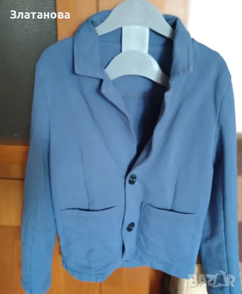 Светло синьо,памучно сако за момче. Марка Мариела. Обличано е веднъж по повод. По етикет е за ръст 122 см.,но е по малко. Дължина 42 см. ръкав 40 см Без забележки и коментар!