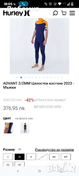 Неопренов костюм Hurley ADVANT М размер Цялостен костюм за сърф