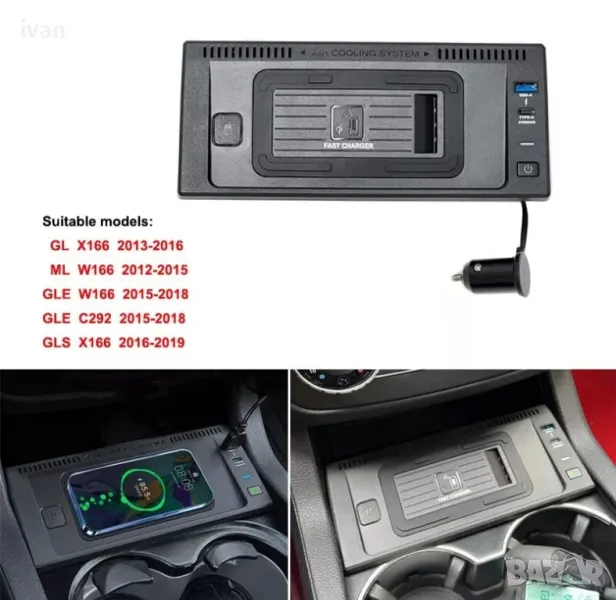 намаление Добавка 15 W безжично зарядно с охлаждане за Мерцедес Gl, Ml, GLE и GLS