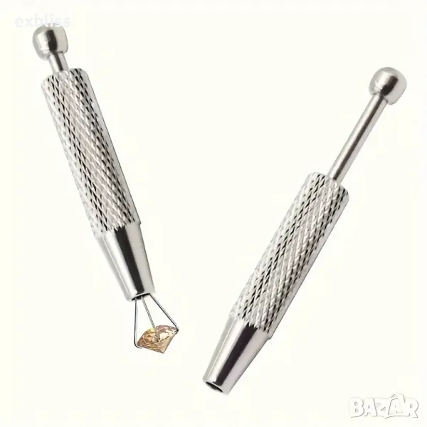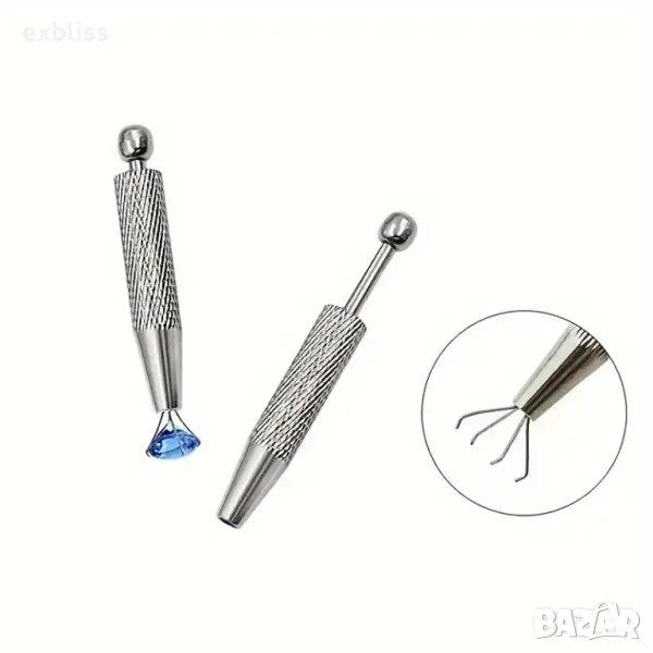 Основната функция на този инструмент е да взема и поставя малки камъни, мъниста или други миниатюрни части лесно и здраво. Механизмът осигурява стабилен захват, който предотвратява изплъзване и загуба на малките елементи, докато работите. Това е особено полезно при закрепване на камъни, подреждане на мъниста или манипулиране на дребни компоненти.