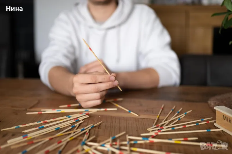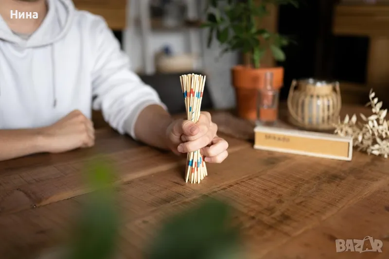 ИНСТРУКЦИИ ЗА ИГРАТА: Прости правила на играта – целта е да извадите пръчки от една купчина, без да местите останалите. Всяка пръчка има определена точкова стойност. Който събере най-много точки накрая, печели играта 🏆
