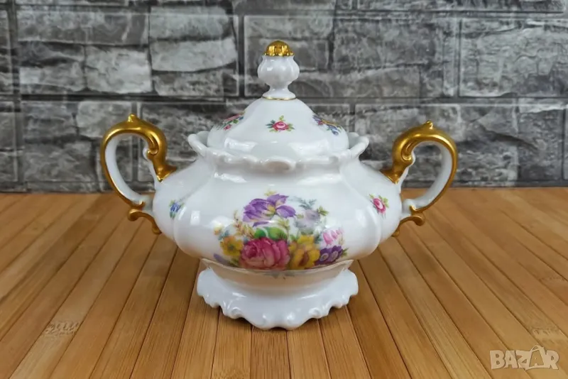 Разкошен топ модел с елегантно съчетани барокови релефни форми, флорален декор и златни акценти.