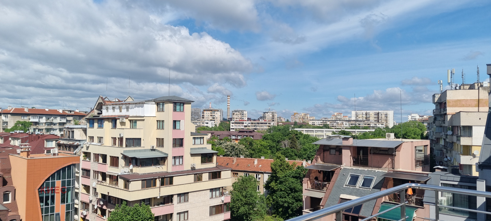 Просторен, светъл и слънчев офис на 2 етажа с прекрасни гледки. Офис сграда на метри от спирка на метро бул.България и бул.Акад.Иван Евстратиев Гешов. Състои се от 9 помещения, тоалетна, кухненски бокс, панорамна тераса 58 квм. Фоайето на сградата е представително и с охрана. Поддръжка 1 е/квм.