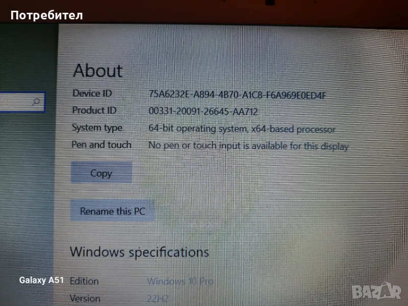 Windows 10 Pro, 64-bit operating system, x64-based processor