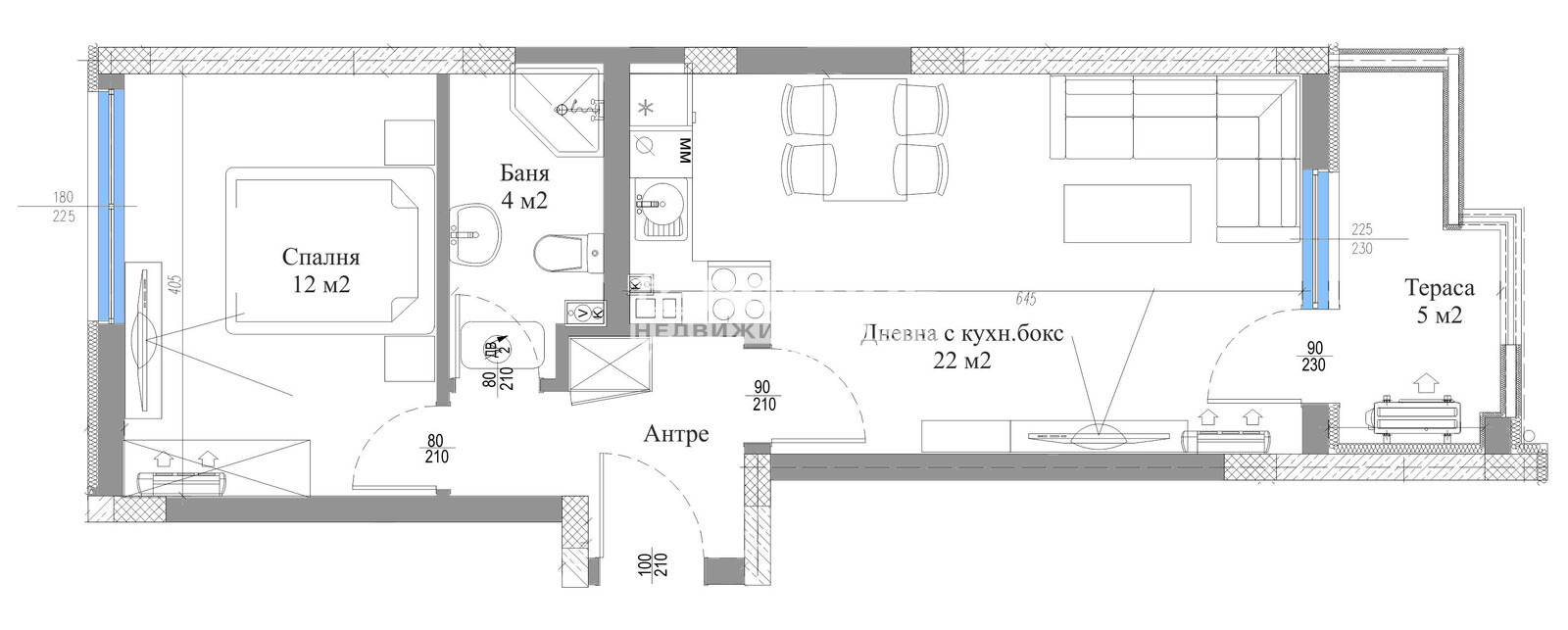 Оферта 66873: ТОП ОФЕРТА !!! Предлагаме Ви вътрешен двустаен апартамент в един от най-иновативните ни жилищни комплекси със собствен стил, изчистена и модерна визия, проектиран с нисък процент общи части, така че да създаде максимален комфорт и уют за живеене. Проектът предвижда комплексно застрояване, просторни и панорамни жилища, голям вътрешен двор с оформен детски кът и зелени зони за релакс и почивка. Паркирането е решено с Партерни и Подземни гаражи и голям избор на външни Паркоместа. Жилището се състои от слънчева дневна 22кв.м. с трапезария и кухненски бокс, една самостоятелна спалня 12кв.м., баня с тоалетна, входно антре и обособен склад, подходящ и за перално помещение и една тераса. Сградата привлича вниманието със своята локация, разположена в един от най-желаните и бързоразвиващи се квартали в Близост до гребна База и всички основни комуникации. Изпълнението ще се осъществява с висококачествени материали и съвременни технологии, по европейски стандарт, шесткамерна PVC дограма троен стъклопакет, блиндирана входна врата с 4-странно заключване, сензорно осветление, хидравлични асансьори с огледална кабина !!! Проектирането е съобразено така, че да създаде максимален комфорт и функционалност, като първия акцент са елегантните общи части, широки входни антрета с красив дизайн, които да носи удоволствие. Предвидена е звукоизлолация по пода за максимален комфорт и ограничаване на въздействието на шума върху обитателите на сградата. Свободни външни паркоместа на цени от 8500 евро и опция за закупуване на Партерен Гараж. Гъвкави схеми на разсрочено плащане в рамките на строителството, както и съдействие за банково кредитиране с изключително изгодни условия за клиенти на агенция Кондор.ВИЖТЕ ОЩЕ ИЗГОДНИ ОФЕРТИ НА https://www.kondorimoti.com/ С ЕЖЕДНЕВНА АКТУАЛИЗАЦИЯ!