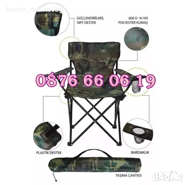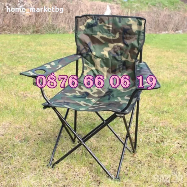 Сгъваем рибарски стол, сгъваем стол за къмпинг, камуфлажен е изработен от висококачествени материали: тексил и метал.