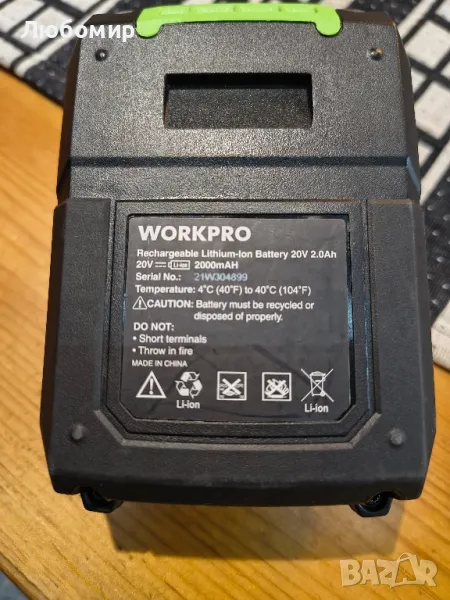 Литиева батерия WORKPRO 20V 2.0Ah, без ефект на паметта, съвместима с продуктите на WORKPRO,