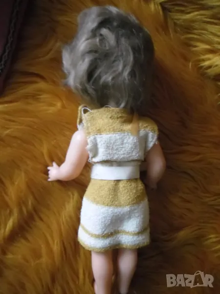 кукла с бяла рокля с беж ленти,(липсват очите)-39 см -13 евро