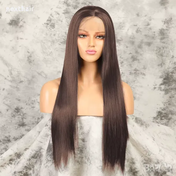 Дълга кестенява права перука 80 см с дантела 13×4×1 → Обява 50229370