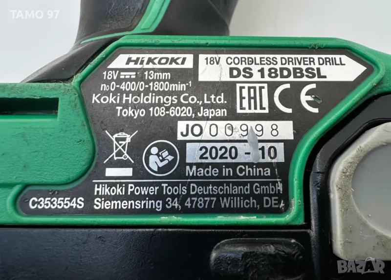 Марка и модел: HiKoki DS 18DBSL / Hitachi DS 18DBSL