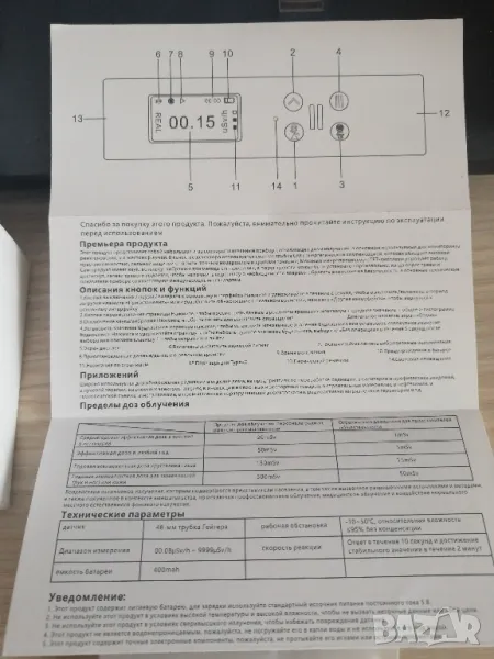 1 Брой детекции: 48 мм Geiger-ова броячна тръба