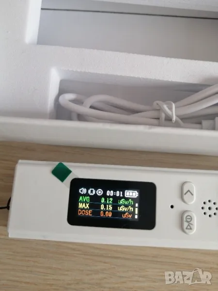 ДЕТЕКТОР ЗА ЯДРЕНО РАДИАЦИОННО ИЗЛЪЧВАНЕ -- Радиационният детектор използва професионален Гайгеров брояч и енергийно компенсирана GM броячна тръба като основен сензор за точно откриване на бета, гама и рентгенови лъчи. Бърза скорост на откриване, силна защита от смущения, висока чувствителност, широк диапазон на измерване и дълъг експлоатационен живот. Обхват на откриване: 0.08uSv/h~9999uSv/h. Данните за радиационната доза се актуализират в реално време за секунда.
