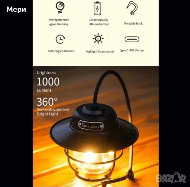 подвижна къмпинг лампа с USB зареждане → Обява 50231249
