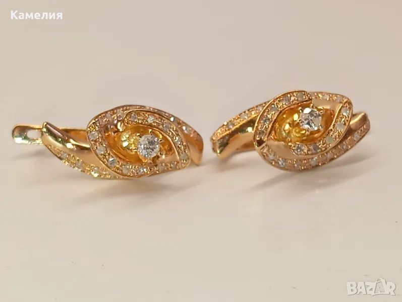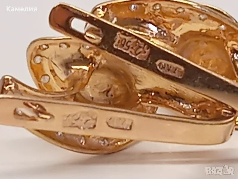 Руски златни обеци с брилианти. Проба 585 звезда. Ленинград. Жълто злато. Грамаж 5,26 грам. Обеците не са малки.