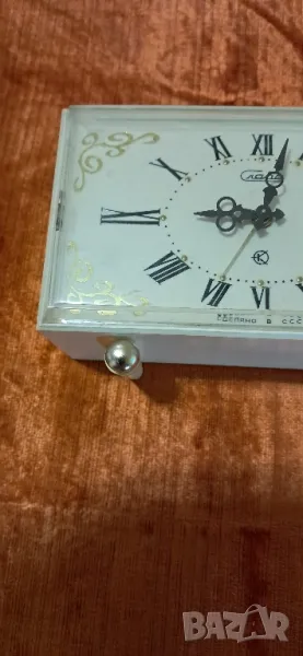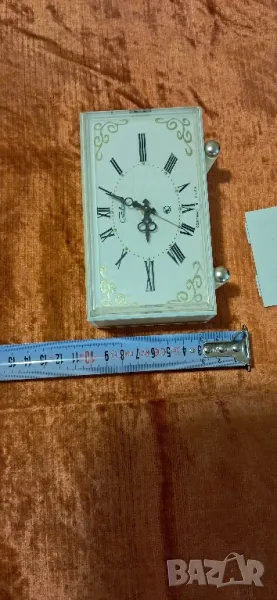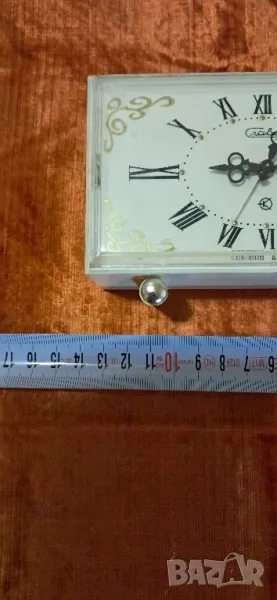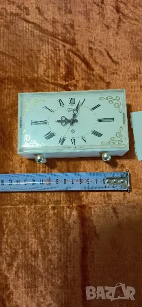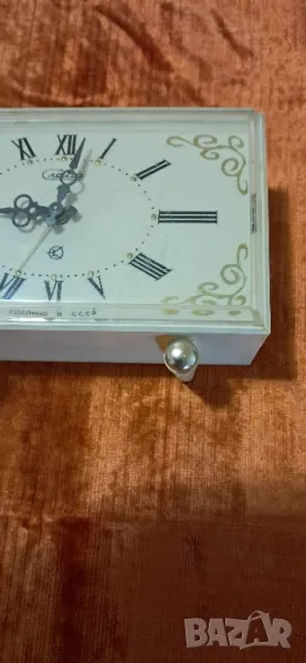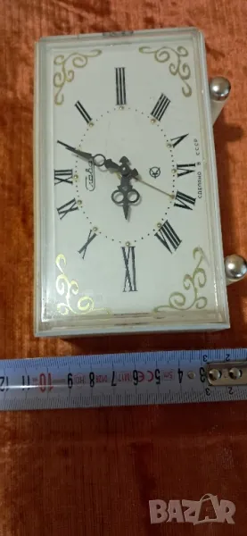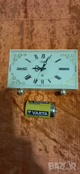 Стар настолен електромеханичен часовник-Слава, СССР. Часовника е перфектно състояние видно на снимките изключително запазен без следи от употреба, същият функционира тоест работи и звъни на зададения час. Славата е за колекционери и фенове винтидж предмети. Цената не подлежи на коментар.