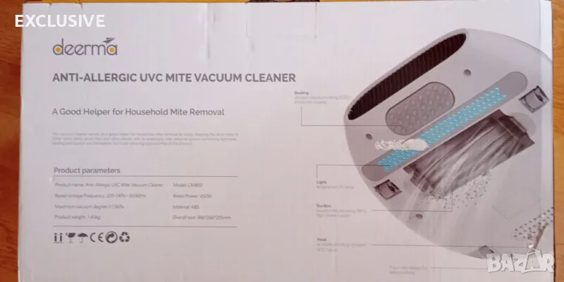Ръчна прахосмукачка Deerma, CM800, 450W, Против акари, UV светлина, 13000Pa нова 1 ползвана