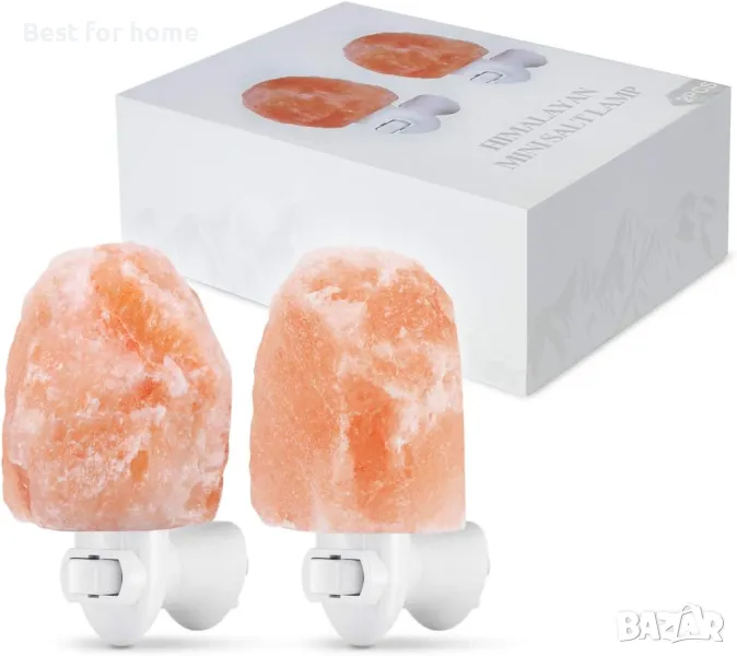 Стенни лампи от хималайска кристална сол AMIR, естествена хималайска кристална солна лампа , мини ръчно резбована нощна лампа 11.2oz, с UL-сертифициран контакт за стена, декоративна лампа от солни камъни (2 броя)