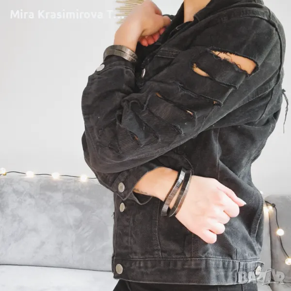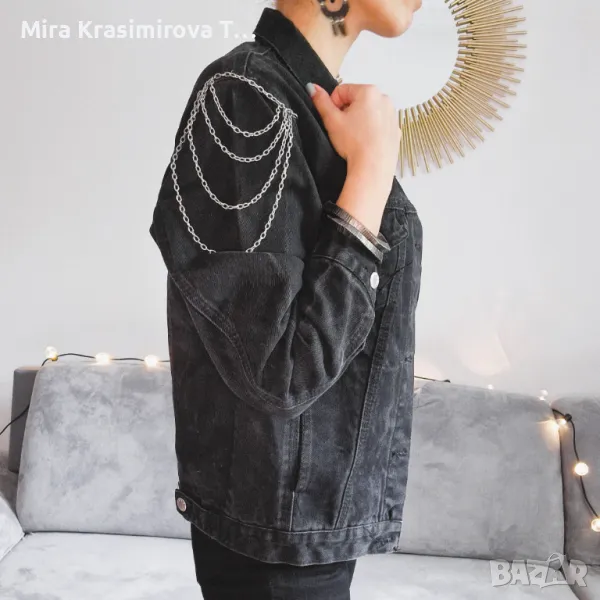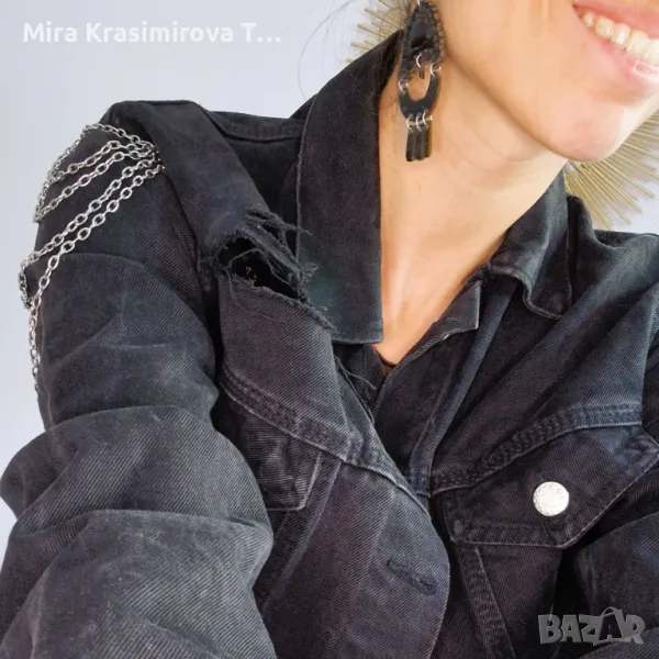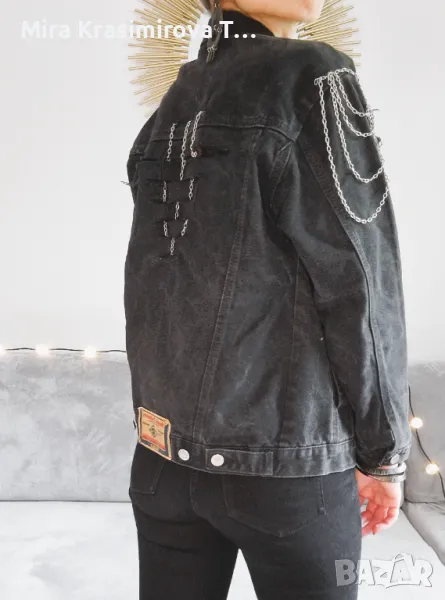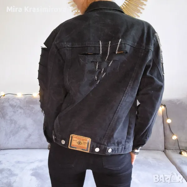Diesel, деним, преработено с хендмейд детайли: метални вериги, декоративни срязвания и контрастни акценти. Всеки елемент е добавен ръчно, за да придаде индивидуалност и характер.
