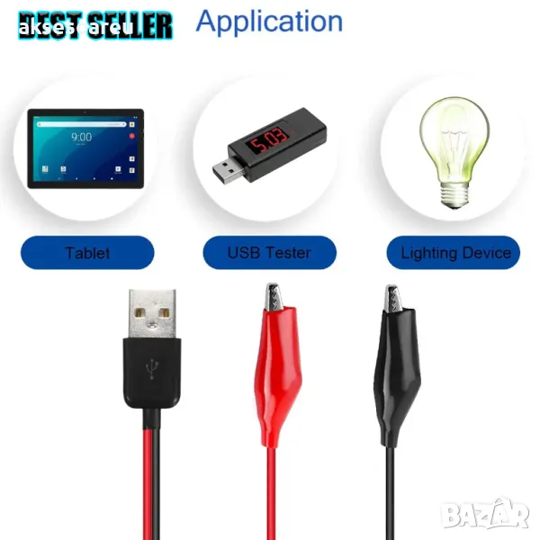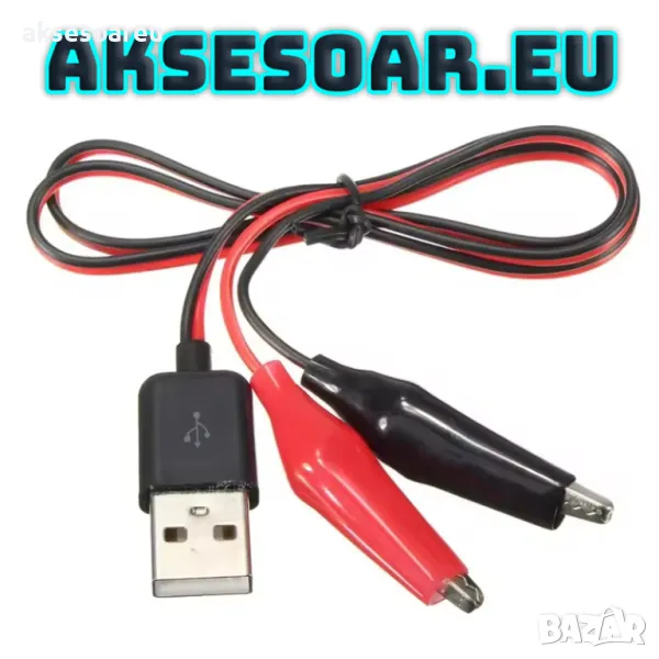 USB адаптер преходник за ток с 2 електрически кабела със щипки скоби тип крокодил тестови сонди