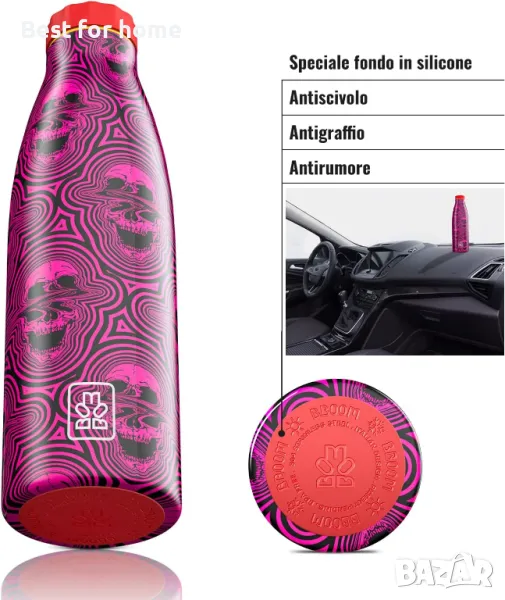 Бутилки от неръждаема стомана BBOOM без BPA | Термо бутилка за вода с двойна стена, вакуумна изолация | 500 мл (Teschi Psychedelic)