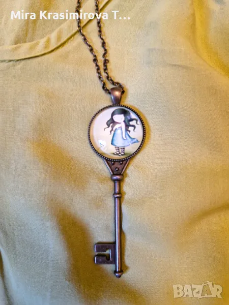 ✔ Към комплекта – винтидж колие с рисуван медальон във формата на ключ