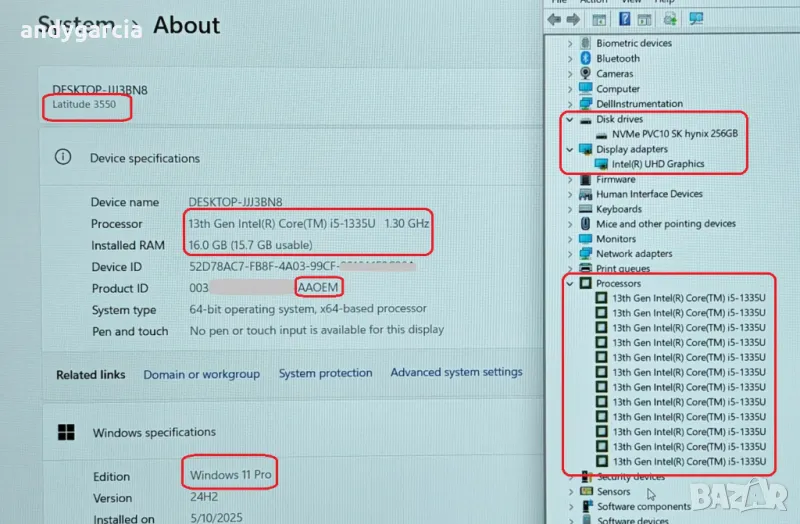 Dell Latitude 3550/Core i5-1335U/16GB RAM/256GB SSD/Intel Iris/Win 11 Pro/ ЧИСТО НОВ, ГАРАНЦИЯ 2 год