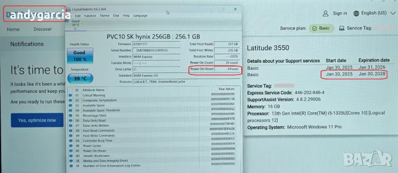 Обърнете внимание, диска е работил САМО 4:00 часа...НА СНИМКИТЕ.