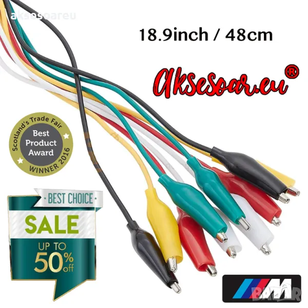1 комплект 10 бр. електрически тестови кабели с двустранни щипки