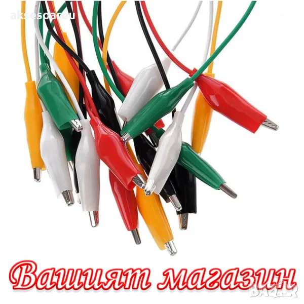 комплект 10 бр. електрически кабели със щипки тип крокодил тестови кабели с двустранни