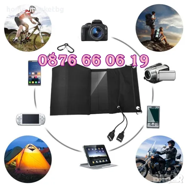 Сгъваем соларен панел 21W, с накрайници за зареждане, сгъваем соларен панел за къмпинг