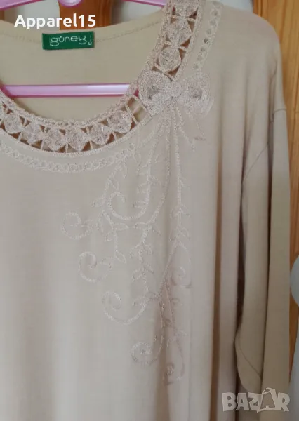 Бежова памучна блуза с бродерия → Обява 50235085