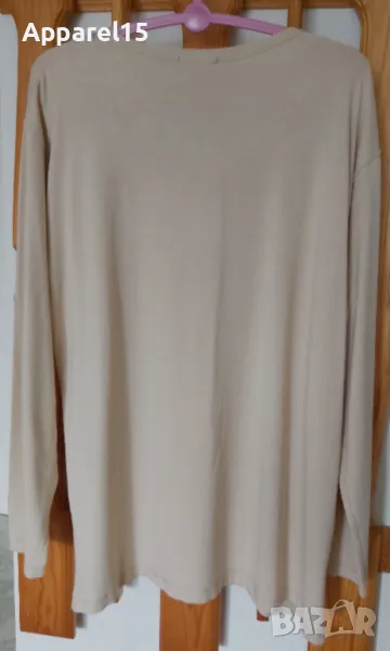 Бежова памучна блуза с дълъг ръкав