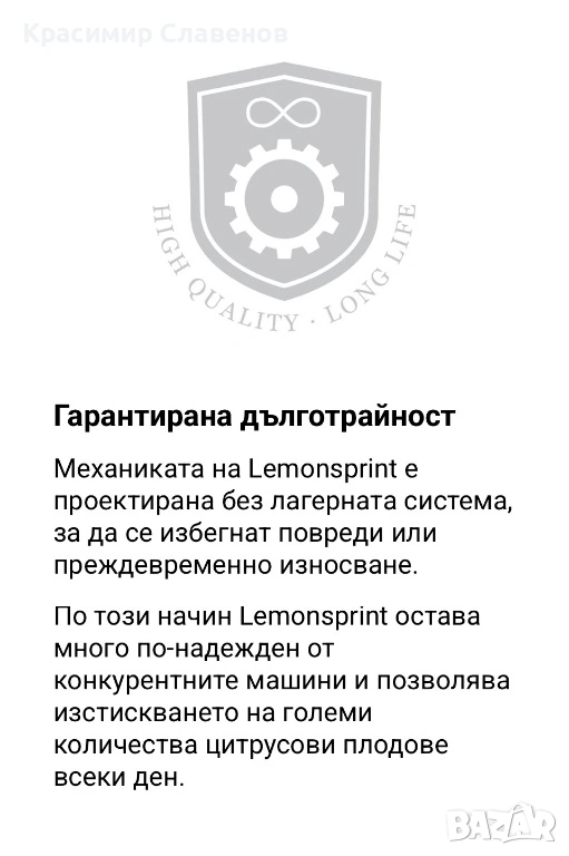 LEMONSPRINT е замислен за автоматично получаване на сок от лимони, тъй като на пазара няма машина за тази цел. Тази машина очевидно може да приготвя и сок от портокал, грейпфрут и лайм. Надеждност, голяма лекота на използване и максимално почистване.