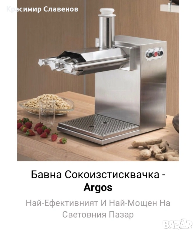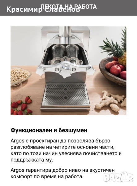 Argos несъмнено е уникален: най-ефективната и най-мощна търговска сокоизстисквачка за бавно изстискване, предлагана в момента на световния пазар.