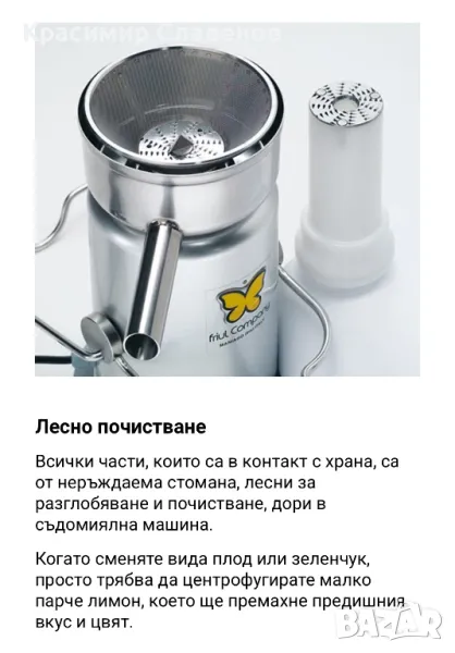 Никоя друга бавна сокоизстисквачка не е оборудвана с толкова здрави, надеждни и технически усъвършенствани компоненти, които могат да изстискват със сила и при пълна безопасност боровинки и корени от джинджифил със скорост не по-висока от 45 оборота в минута.