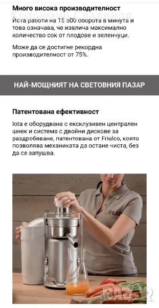 Профисионалните сокоизтисквачки на Friulco са 100% пройзведени в Италия
