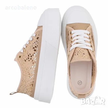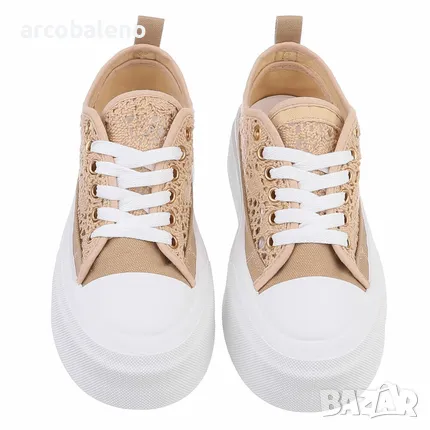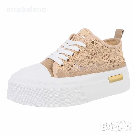 Тези маратонки съчетават спортна елегантност с оптимален комфорт и атрактивен дизайн. Страничните секции са с уникален текстилен модел, който осигурява изключителна въздухопропускливост. Здравата, повдигната подметка на платформа поддържа здравословна стойка и осигурява удобно омекотяване при всяка стъпка. Благодарение на класическото връзване, обувките могат да се регулират индивидуално и осигуряват сигурно прилягане. Подсилените пръсти и пета осигуряват допълнителна защита и издръжливост. Тези универсални маратонки са идеални за разнообразни дейности за свободното време и предлагат отлично съотношение цена-качество. Независимо дали се разхождате из града или сте в ежедневието – те предлагат удобно прилягане и модерен външен вид.