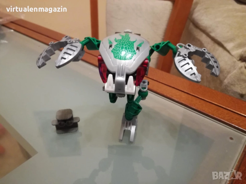 Липсват 4 елемента - маската - номер на елемента: 42042bo , както и единият му крак (състои се от 3 елемента: зелен 41670