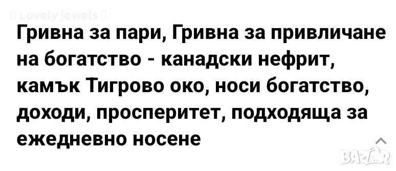 Гривна канадски нефрит за привличане на пари → Обява 50236263
