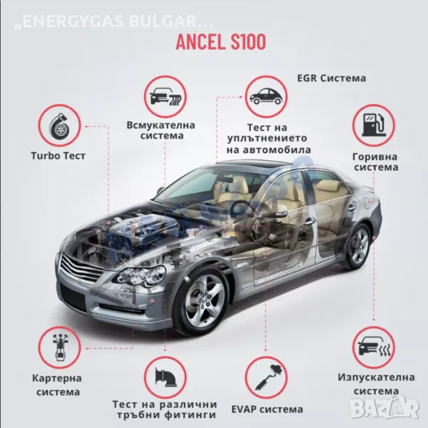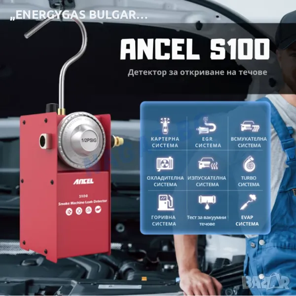 Ancel S100 е надеждно устройство за откриване на течове на превозни средства, което ви позволява бързо и ефективно да диагностицирате различни автомобилни системи. Компактен и лесен за използване, S100 ще се окаже полезен в работилниците. Използвайки генерирания дим, устройството ви позволява точно да локализирате източника на проблема, спестявайки време. Tрябва да закупите отделно въздушна помпа, тъй като ANCEL S100 НЯМА вградена въздушна помпа.