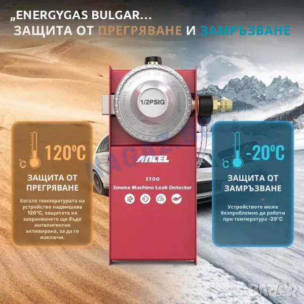-БЕЗОПАСНО И УСЪВЪРШЕНСТВАНО: Машината за дим ANCEL S100 е безопасна и надеждна, без да се налага автомобилът да бъде стартирван по време на употреба. Димът е безвреден. Защита от прегряване и защита от замръзване – когато температурната граница от 75 ° C бъде надвишена, интелигентното захранване ще се изключи автоматично. Уредът може да работи безпроблемно дори и при -20 ° C.
